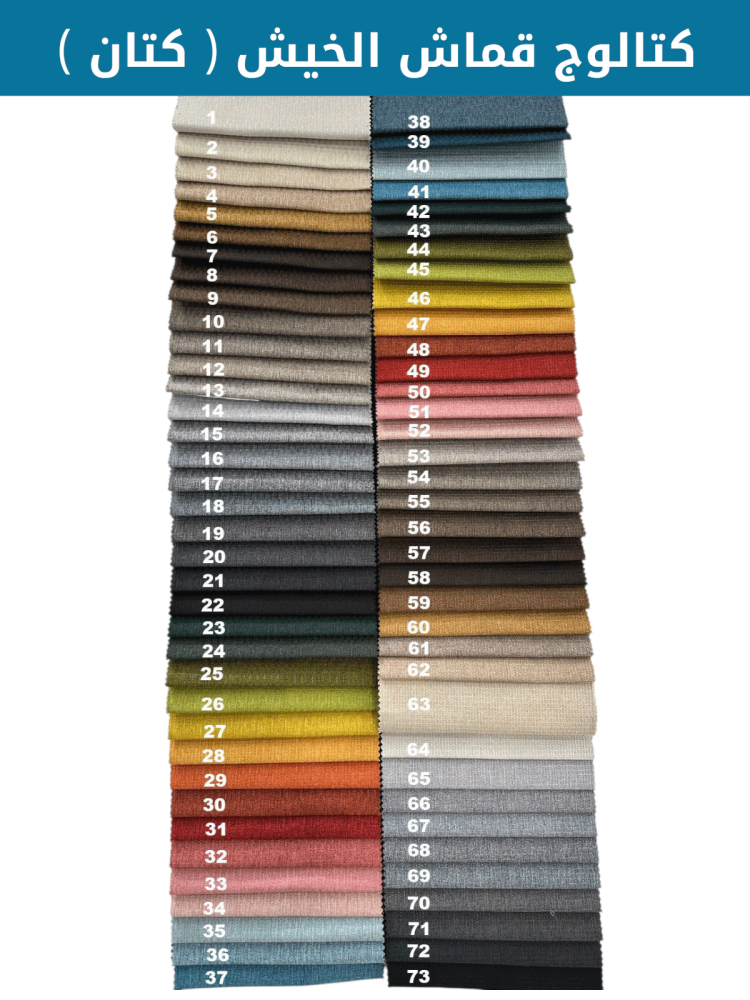 - الأقمشة المتاحة: بوكلية، خيش (كتان)، أو المخمل حسب اختيار العميل.